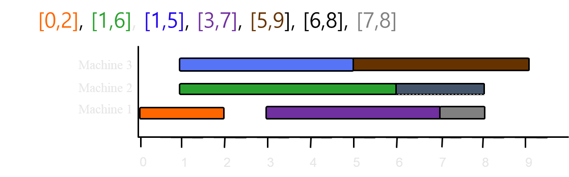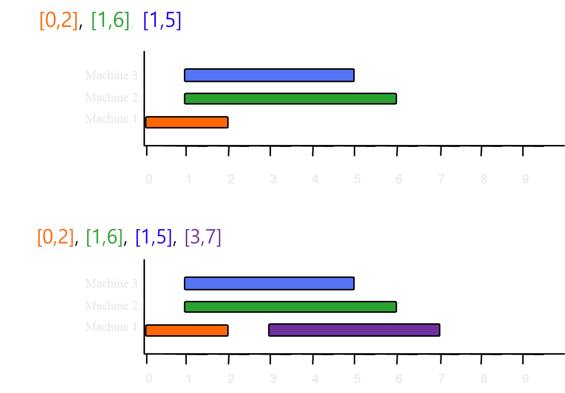 - Line 5~11 : while-루프를 반복 수행하면서 각 작업이 적절한 기계에 배정된다.